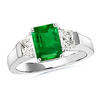 SPECIAL OFFERS Trapezoid Diamond and Emerald Cut Emerald Three Stone Ring in Platinum Quality Heirloom (Extra 15% OFF + Free studs!! Use Code: CSEAZ15 )